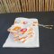 Vous apprécierez la pochette de rangement en tissu coton agrémentée d'un bandeau de tissu imprimé rappelant l'un des tissus utilisés pour les lingettes. La pochette se ferme à l'aide d'un lien réalisé en tissu coton.