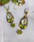 J’ai orné autour de ce motif une chaîne strass verre à laquelle s’ajoute des roses en pâte polymère fait main, aquarellées puis vernies et des coupelles feuillages filigranées métal.
