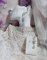 J’ai ajouté des pendants en forme de poire facettée dans les nuances Ivoire Opaque AB en verre.