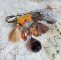 J’ai ajouté 2 gouttes en forme de larmes de bohème verre dans les nuances de Light Topaz et Topaz AB avec 2 pompons Beige et Marron.